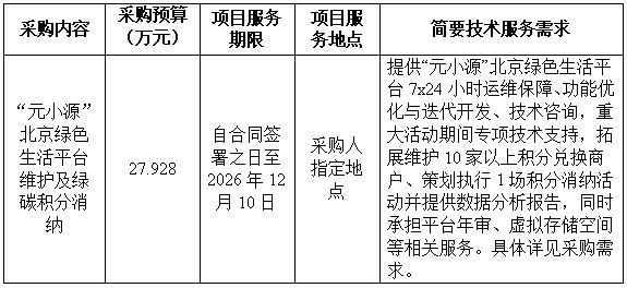 “元小源”北京绿色生活平台维护及绿碳积分消纳比选公告