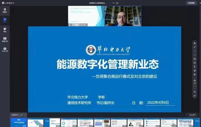按照北京市绿色发展及碳达峰碳中和“大宣讲”工作安排,4月8日,节能环保中心规划政策部邀请华北电力大学电气与电子工程学院通信技术研究所李彬副教授,以“能源数字化管理新业态之负荷聚合商运行模式及对北京的建议”为主题进行了线上专题宣讲,节能环保领域相关人员75人参加了本期宣讲活动。